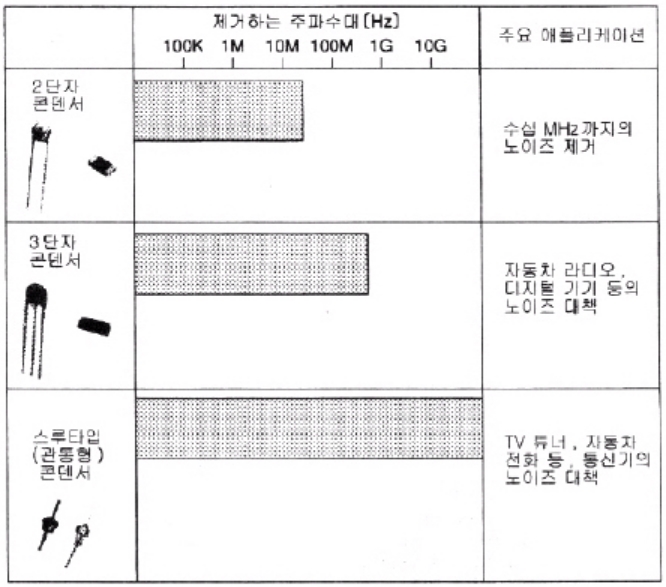 3) 콘덴서의 종류와 제거할 수 있는 노이즈 주파수