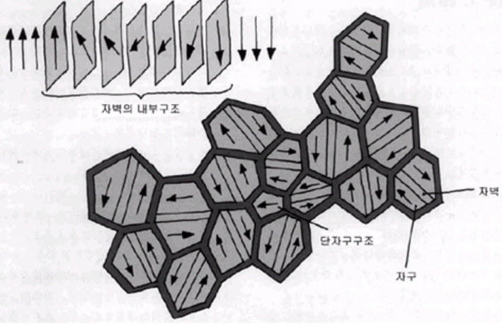 그림1. 자석의 자구구조의 모식도 (자화용이 방향이 하나인 경우)