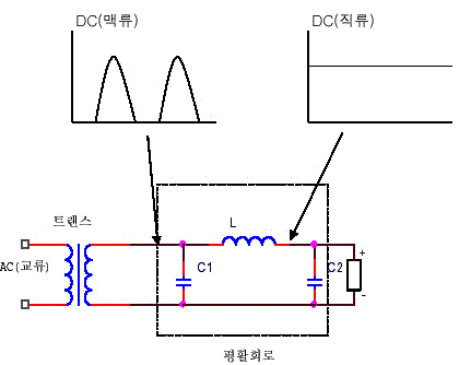 전원회로의 높은 용량의 콘데서를 사용하면 전원이 불안전하게 들어와도 안정적인 전원을 공급할 수 있다.
