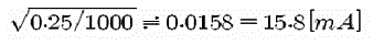 1/4W의 저항기로 취급할 수 있는 전류의 계산은 아래와 같다. 1KΩ 이면