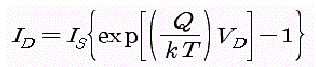 이상과 같은 것을 그림2에 나타난 접합 다이오드의 정 특성에서 살펴보기로 한다. 그림 2(a)의 N형으로 다수 캐리어인 정공이 이동하여 큰 순방향 전류가 흐른다. 그 때의 전류값ID는 다음과 같은 식으로 나타낸다.