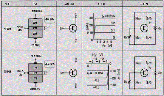 그림 기호에서 이미터의 화살표는 전류가 흐르는 방향을 나타내고 있다.