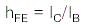 직류에서의 베이스 전류와 컬렉터의 비율이다. 컬렉터 전류나 주위온도 등에 의해 변화된다.