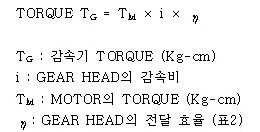 MOTOR에 GEAR HEAD를 조합하여 TORQUE를 증폭 시킬 때의 효율로 단위는 %로 표시한다.