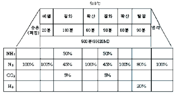 질소(N2), 암모니아(NH3)를 이용하여 철표면에 N를 침투 확산 시 경질의 질화물 (e Fe2-N.rFe4N)을 형성하며 강중에 N과 결합력이 강한 합급원소 (Al, Cr, Mo)는 고경도의 질화물(AIN, Cr2N, MON)을 생성 시킨다. (표1 참조)