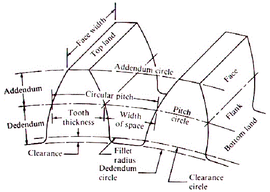 다음 그림은 기어 이의 각부 명칭을 나타낸 것이다.
